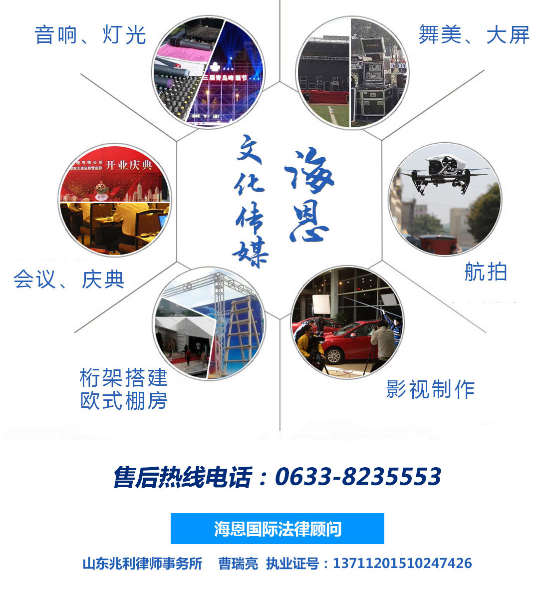 日照海恩國(guó)際展覽股份有限公司主要經(jīng)營(yíng):為文化藝術(shù)交流提供服務(wù),攝影攝像服務(wù),廣告圖文設(shè)計(jì),舞臺(tái)設(shè)計(jì),文化藝術(shù)交流策劃,舞臺(tái)藝術(shù)造型策劃,企業(yè)營(yíng)銷(xiāo)策劃,商務(wù)信息咨詢(xún),會(huì)議服務(wù),展覽展示服務(wù),禮儀慶典服務(wù),廣告設(shè)計(jì)制作等產(chǎn)品。公司尊崇“踏實(shí)、拼搏、責(zé)任”的企業(yè)精神,并以誠(chéng)信、共贏、經(jīng)營(yíng)理念,創(chuàng)造良好的企業(yè)環(huán)境,以全新的管理模式,完善的技術(shù),周到的服務(wù),我們始終堅(jiān)...